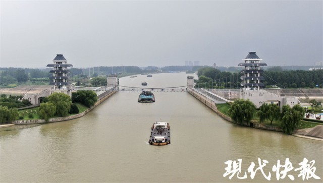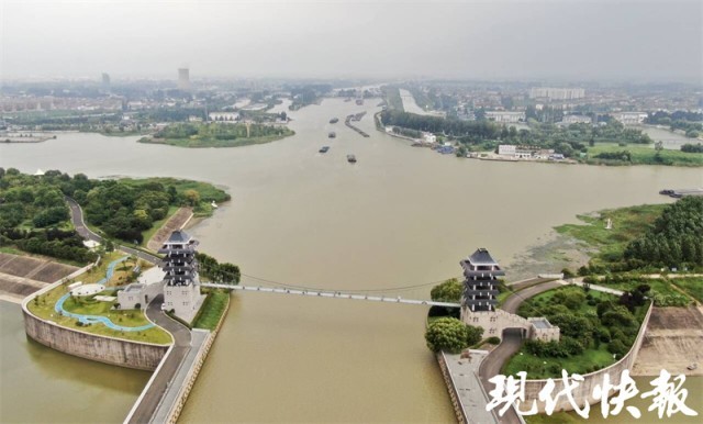 其实,建设河道立交具有重大意义。江苏省淮河入海水道工程管理处大运河立交管理所所长李璟介绍,淮安水上立交枢纽工程兼顾着大运河和淮河入海水道的航运和泄洪两个功能。“因为大运河的日常水位要比淮河入海水道高出五六米,所以这两条河流相交的时候,必须要有一个工程措施。”