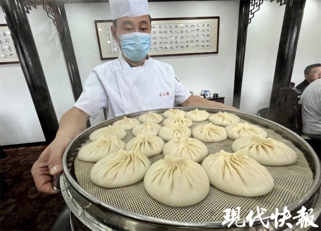 “文楼的汤包——吃得等不得”。为啥等不得?因为它看上去实在太诱人。掀开蒸笼,大个包子的皮却像纸一样,薄而不破,晶莹剔透,从中可以看到蟹油翻滚,叫人怎能不垂涎。文楼汤包,是用吸管喝的,插入吸管吸上一大口汤,滋味醇厚鲜香,爽滑不腻。