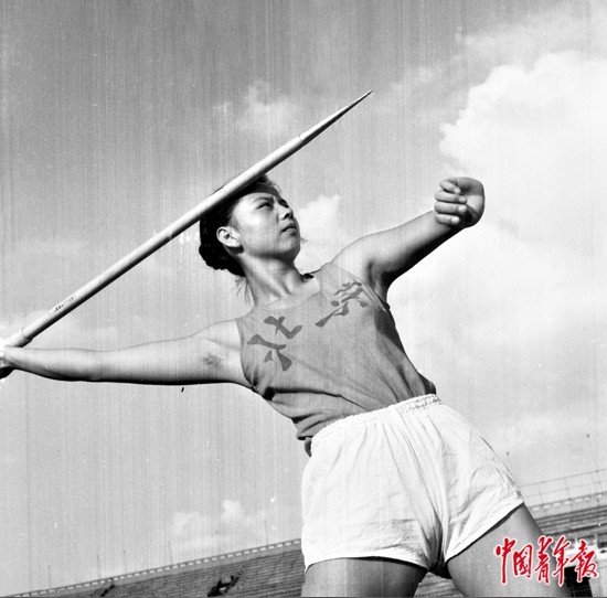 1960年6月,北京钢铁学院学生、标枪运动员韩菊元在30个城市大中小学十项田径通讯比赛中夺得女子标枪冠军,并突破了她在前一年全运会上创造的最远纪录。1956年,韩菊元以竹竿代替标枪做了第一次投掷练习,3个月后,她首次打破北京市女子标枪纪录。王裕量/摄