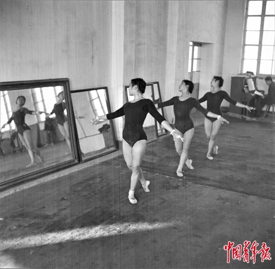 1963年2月21日,北京体育学院的体操运动员在训练。郁正汶/摄