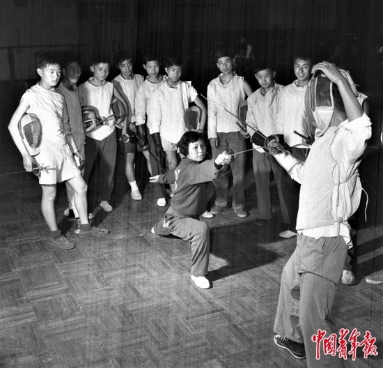 1960年6月,北京业余体育学校,学生在练习击剑。铁矛/摄