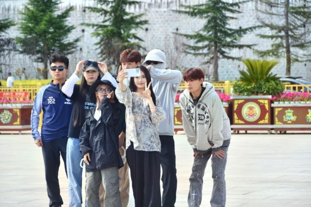西藏博物馆内,游客们正在欣赏展品。来自福建的廖思婕说,在这里她可以了解更多西藏的历史文化,更好地体会拉萨雪顿节的传统节日氛围。古老的八廓街人山人海,老店里挤满了游客,大小巷道里穿着藏族服饰的游客正在拍摄写真。