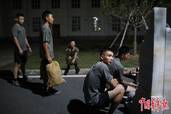 8月15日晚,空军空降兵某部“模范空降兵连”,战士们在准备即将到来的合唱比赛。他们还手工制作了道具,准备表演抗震救灾题材的情景剧。2008年“5·12”汶川特大地震,该连队是最先抵达灾区的部队之一。