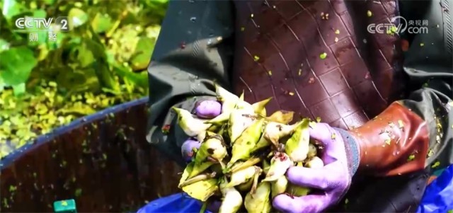 江苏泰州市姜堰区俞垛镇菱角种植户 柳存兰:他们每天能采1200多斤,到目前为止,我这个塘已经收入6万多元。