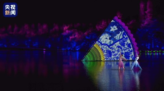 △2016年,G20杭州峰会文艺晚会《最忆是杭州》,背景中“ 折扇”展开的画面