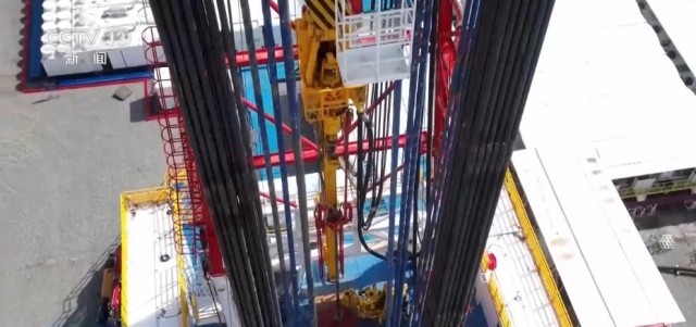 目前,深地塔科1井刚刚完成防止已钻好井壁垮塌,支撑钢管的作业。538根钢管首尾相接的重量达到660吨,创下我国大尺寸钢管作业最深、钢管作业吨位最大等多项纪录,全面检验了钻机提升能力。