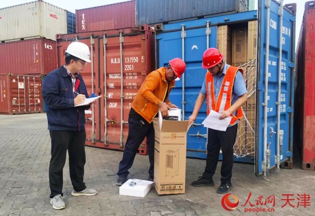 工作人员对货物进行开箱检查。人民网记者 陶建摄