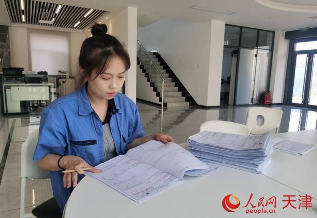 工作人员对货物申报单进行检查。人民网记者 陶建摄