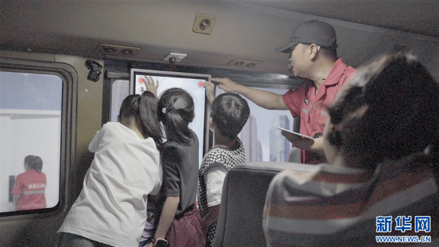 在“十万火急”之公交车火灾逃生环节中,面对讲解员的提问,坐在公交车内的孩子们纷纷“抢答”。“除了破窗外,公交车内还有一个逃生出口,位于公交车的顶部。当车辆发生侧翻时,乘客可以通过这个出口逃生。”讲解员针对突发情况对车辆的逃生方式一一进行了讲解。