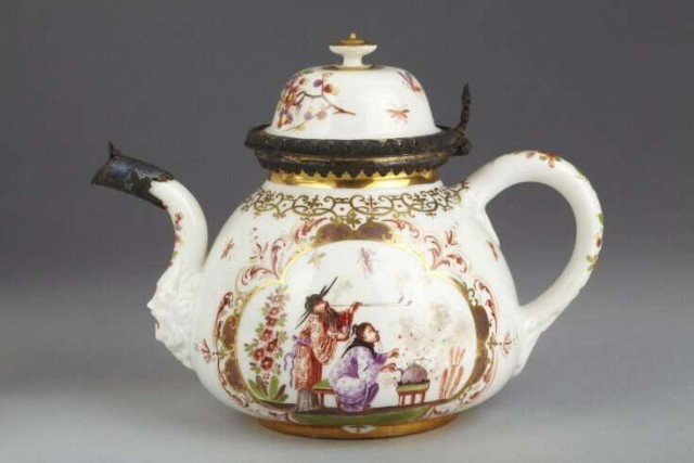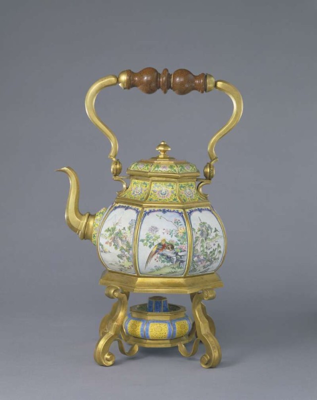 1723年 珐琅彩人物图执壶(中式人物煮茶)(维多利亚与阿尔伯特博物馆)
