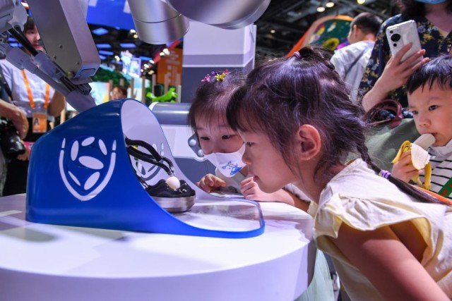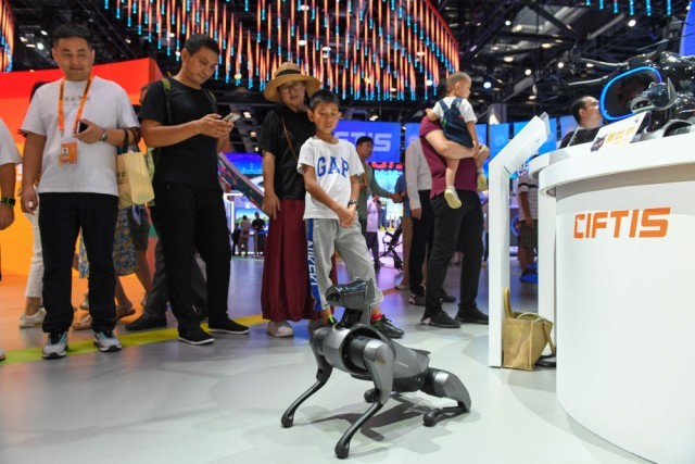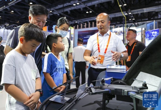 2023年中国国际服务贸易交易会于9月2日至9月6日在北京举办,众多科技产品亮相展区,吸引观众驻足参观。
