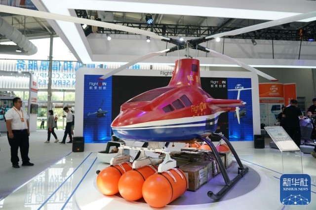 ↑这是9月3日在首钢园拍摄的一款应急救援无人直升机。新华社记者 张晨霖 摄