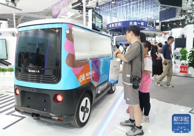 ↑这是9月3日在首钢园拍摄的一款自动驾驶汽车。新华社记者 张晨霖 摄