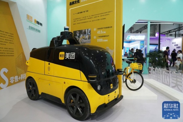 ↑这是9月3日在首钢园拍摄的一款自动配送车。新华社记者 任超 摄