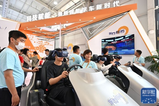 ↑9月3日,参观者在首钢园体验VR学车。新华社记者 李鑫 摄