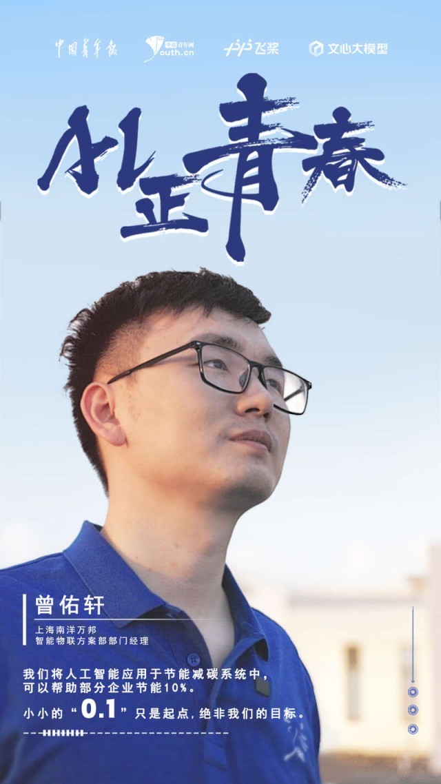 曾佑轩就职于上海南洋万邦软件技术有限公司智能物联部门。此前,他一直致力于将人工智能与物联网业务相结合,助力企业数字化转型和信息系统价值提升。2020年,曾佑轩发现,人工智能在节能减碳领域也有大展拳脚的潜力。他将自己比作“设计师”,为企业节能降碳针对性地设计解决方案。