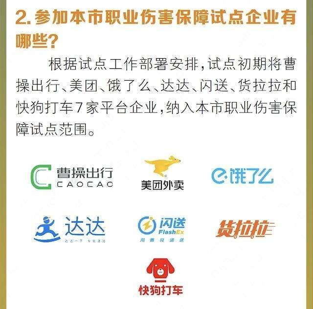 据了解,“新型社保”试点从去年7月1日启动实施,第一批试点在曹操出行、美团、饿了么、达达、闪送、货拉拉、快狗打车7家平台企业,在全国7个省市开展。