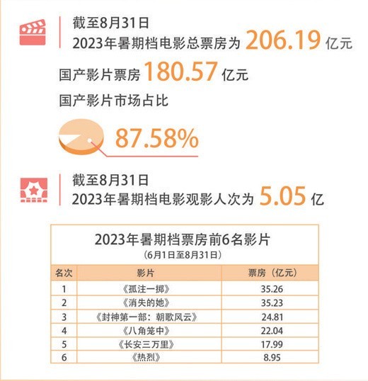 2023年暑期档电影依靠多方面的优势赢得了观众,显示中国电影强劲的发展势头。这再次证明,质量过硬的影片才是吸引观众最主要的因素。