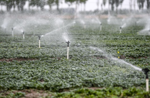 在甘肃省张掖市平川镇平川村5500亩高标准农田里,铺设的水肥一体化滴灌设施,使水资源的流向更明确、用水量更精确。