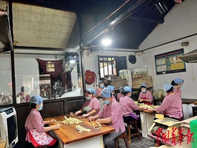 袁家村的一家小吃店里,店员正在做麻花。中青报·中青网记者 陈卓/摄