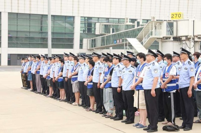 押解犯罪嫌疑人现场。公安部供图
