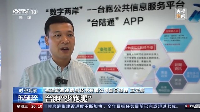 福建新通途信息技术有限公司副总经理 卫元鹏:让数据“多跑路”,台胞“少跑腿”,今后可以随时在两岸电商平台下单,享受两岸共同生活圈购物的便利。
