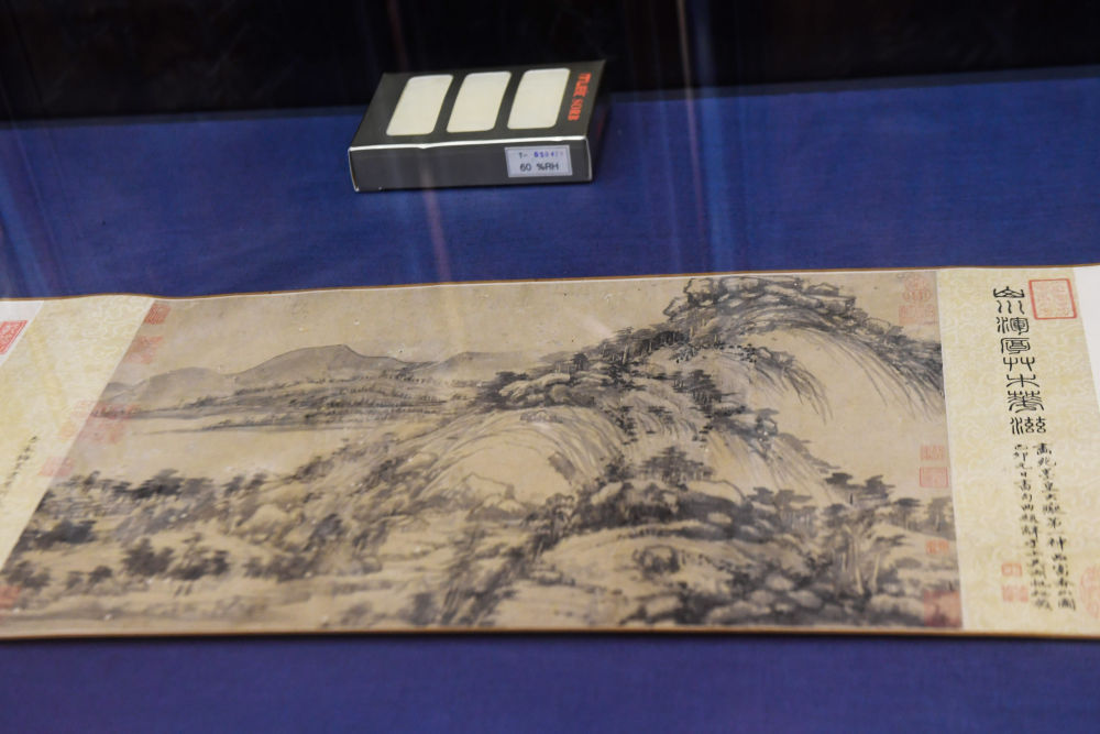 ↑在浙江省博物馆孤山馆区拍摄的黄公望《富春山居图》(剩山图)。
