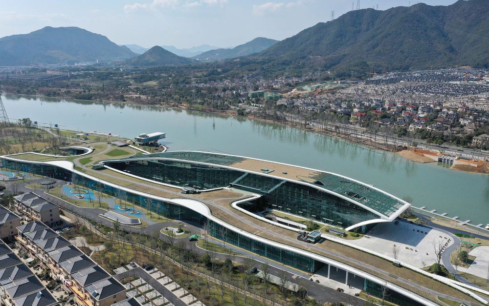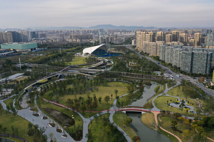 ↑杭州奥体中心场馆群。新华社发(杭州亚组委供图)