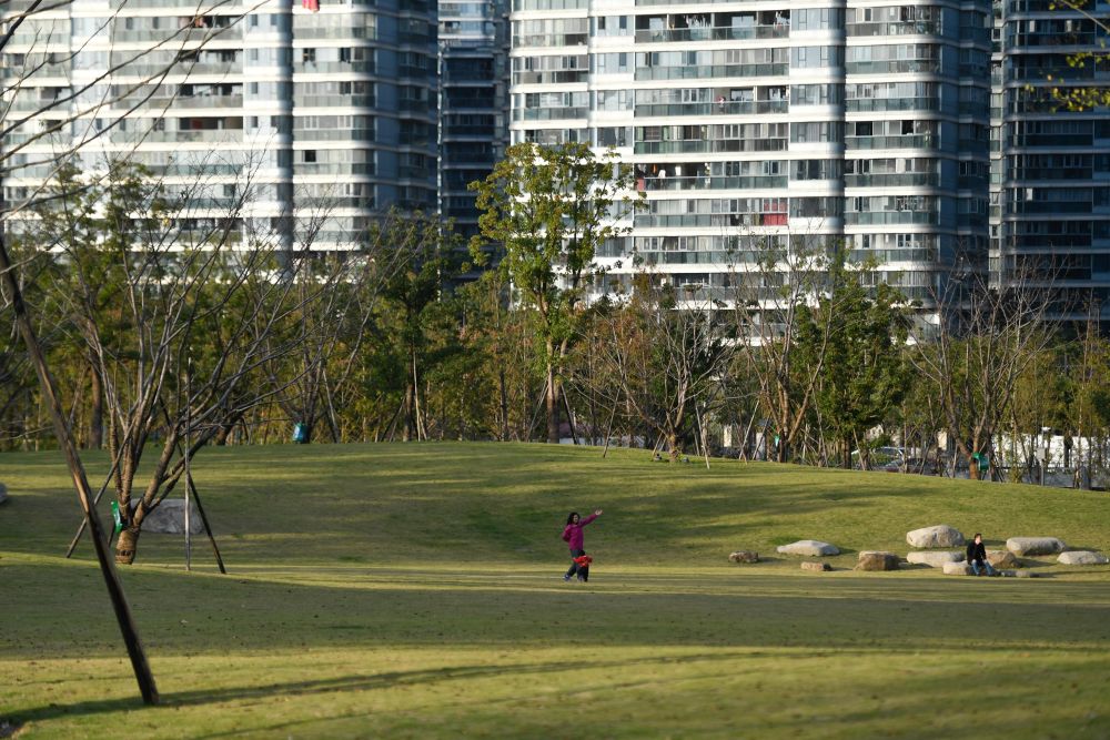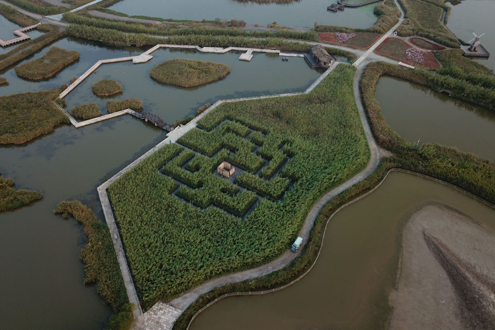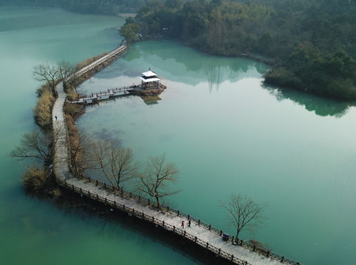 ↑杭州市余杭区瓶窑镇北湖草荡生态湿地的健身游步道。