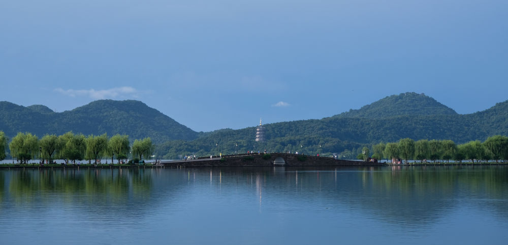 一曲溪流一曲烟,碧波荡漾映蓝天