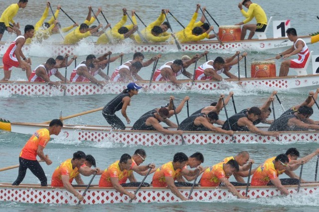 2018年第18届亚运会男子200米龙舟竞速赛。新华社发维里摄(资料图)