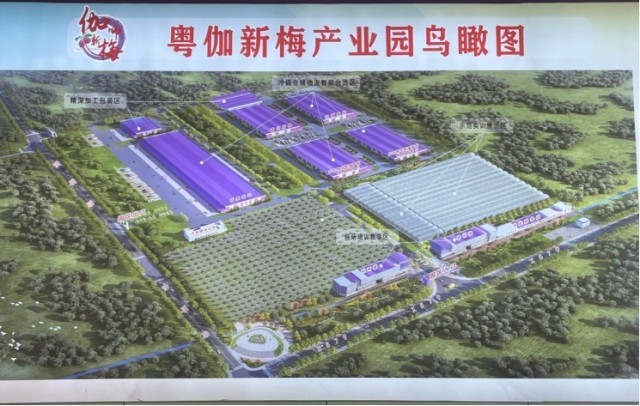 伽师县粤伽新梅产业园由广东省投资援建。总投资5.1亿元,其中援疆资金1.52亿元。项目始建于2021年4月,当年8月竣工,占地24.3万平方米。主要包括科研培训教学区、示范实训品种展示区、冷链仓储物流智能分选区、精深加工包装区等四大功能区。目前已成为国家现代农业产业园、国家骨干冷链物流基地、国家农业现代化示范区。