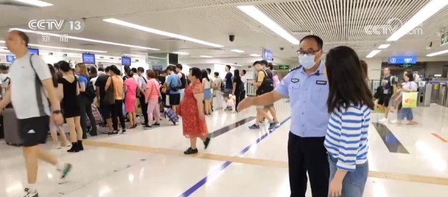 在深圳历史最悠久的罗湖口岸,记者看到等待通关的港澳旅客已经挤满了一楼的入境大厅。为了应对周末到来的通关高峰,罗湖口岸启用了备用通关楼层。