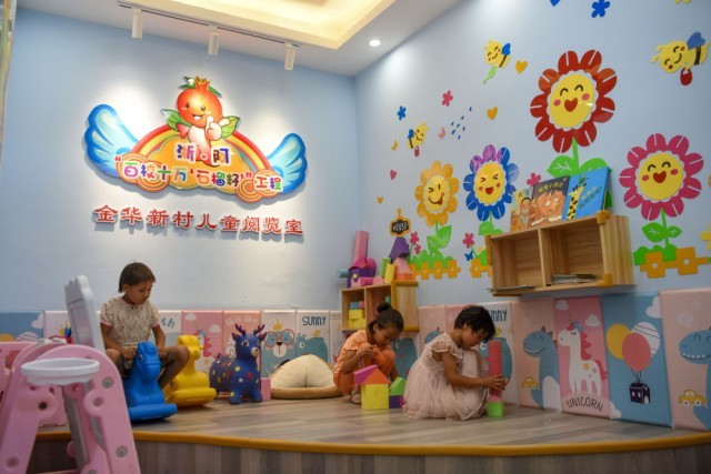新疆温宿县托乎拉乡金华新村的小朋友在浙江金华市援疆指挥部打造的儿童阅览室玩耍(2021年7月4日摄)。新华社记者 丁磊 摄