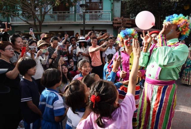 演员与小朋友在新疆喀什古城景区互动(2023年9月7日摄)。新华社记者 兰红光 摄