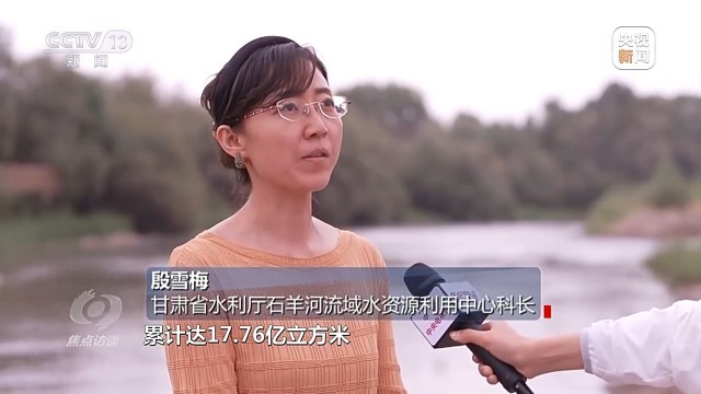 甘肃省水利厅石羊河流域水资源利用中心科长 殷雪梅:利用景电二期工程向民勤引调黄河水,累计达17.76亿立方米,占民勤总来水量1/3,用于置换超采的地下水,保障生态用水,兼顾生产用水,有效缓解民勤用水短缺问题。