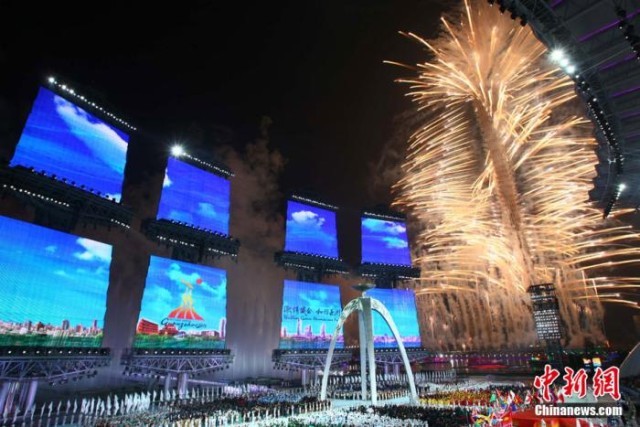 资料图:广州亚运会开幕式现场。 中新社记者 富田 摄