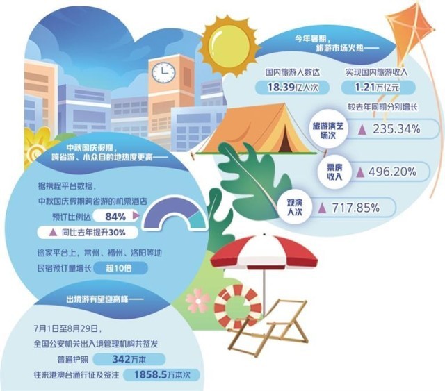 人头攒动的机场、火车站,熙熙攘攘的景区等,成为旅游市场复苏的鲜明印证。中国旅游研究院测算,今年暑期全国国内旅游人次达18.39亿人次,实现国内旅游收入1.21万亿元,多数目的地接待游客人数达到历史最高水平。