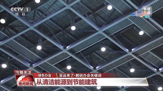 绿色——从清洁能源,到节能建筑,杭州亚运会践行“绿色”办会理念。在杭州奥体中心体育游泳馆,智能导光系统通过屋顶的210根导光管,将室外自然光引入场内,每年可节约10万度电。在杭州富阳水上运动中心,场馆屋顶屋面覆土面积约2.4万平方米,多种绿植让场馆的绿化率达到45%,既能固碳释氧,又让场馆内冬暖夏凉。位于象山的亚帆中心是杭州亚运会唯一的涉海场馆,“绿色、无废”是它最大的亮点:遵循多山地多陡坡的自然现状,陆上建筑依山而建,顺山体逐步升高,以减少对植被的破坏。