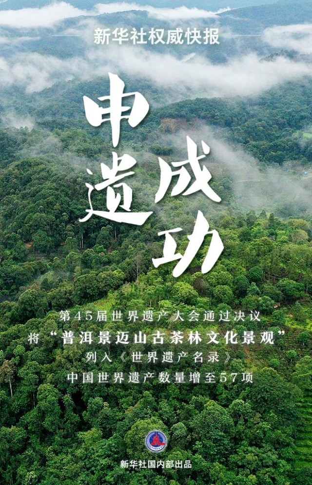记者9月17日从国家文物局获悉,在沙特阿拉伯利雅得举行的联合国教科文组织第45届世界遗产大会通过决议,将“普洱景迈山古茶林文化景观”列入《世界遗产名录》。这是全球首个茶主题世界文化遗产。