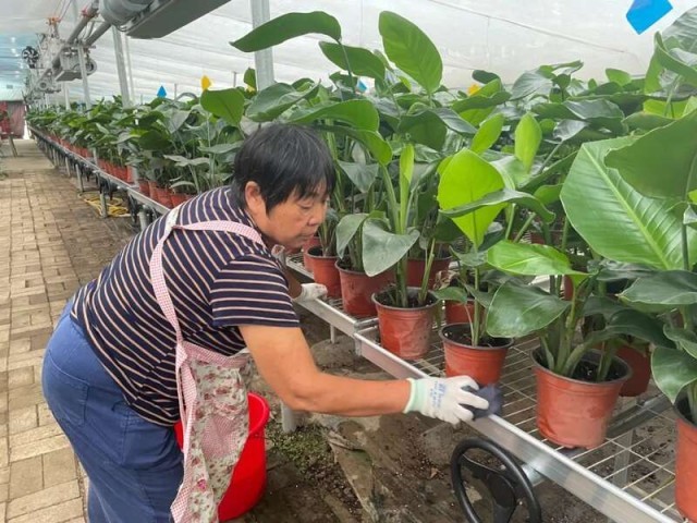 西南蒲村村民刘大妈参与“以工代赈”项目,在大棚中进行清理工作。刘长春/摄
