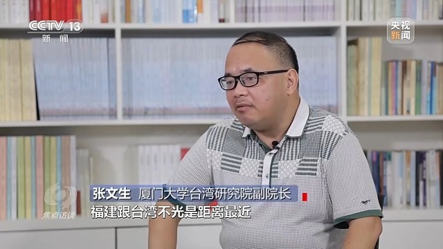 厦门大学台湾研究院副院长 张文生:福建在地理上离台湾最近,台湾海峡最窄的距离是68海里。福建跟台湾不光距离最近,而且人的交流也最密切,文化也最靠近,所以党中央、国务院希望福建发挥对台工作的独特作用,我想这也是福建理所当然、责无旁贷的历史责任。