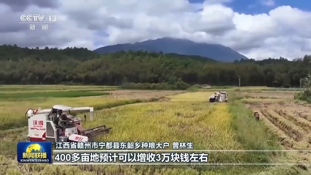 汤原县是黑龙江粮食主产区之一,全县水稻种植面积67万亩。当地组织1300余台套大中型收割机,成立农机应急作业服务队为农户提供便捷服务,确保粮食颗粒归仓。在江西宁都,30万亩中稻迎来丰收。今年,当地扩大优质水稻种植面积,加大技术推广力度,种粮效益不断提高。