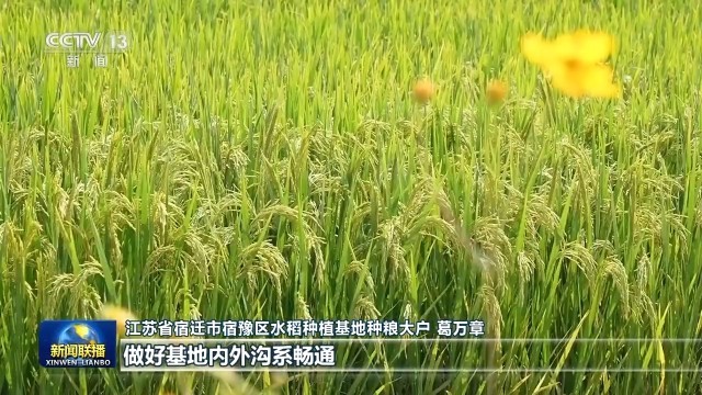 江苏省宿迁市宿豫区水稻种植基地种粮大户 葛万章:我们根据农技专家的指导建议,有针对性地进行病虫害防治,做好基地内外沟系畅通,保证水稻丰产丰收。