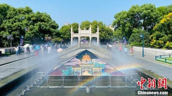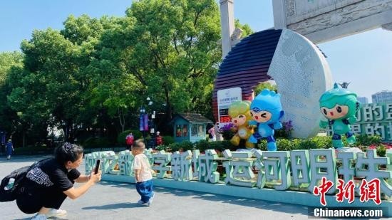 随着亚运临近,杭州城市街头亚运氛围浓厚,其中吉祥物形象受到不少民众喜爱。18日,记者来到京杭大运河的最南端——拱宸桥,探访杭州亚运会吉祥物“宸宸”的诞生地。图为拱宸桥边的运河广场。