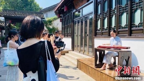 参观者在桥西历史文化街区观看古琴表演。
