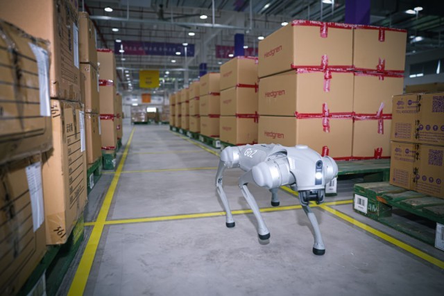 利用无人叉车、无人扫地机、机器狗等智能化设备,能够保障亚运物资安全储备和高效调配;