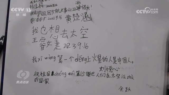 小学生肖品仪:“我们坐上舱下去有失去重心的感觉,挺惊险的,航天员勇敢上去,又安安全全返回来,确实挺勇敢的。”