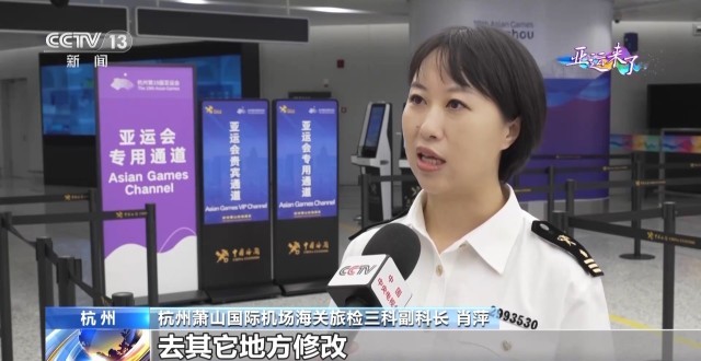 杭州萧山国际机场海关旅检三科副科长 肖萍:我们这里是运动员和涉亚运会人员,包括所有的入境人员到达的第一站,给他们会留下一个第一印象,希望这个印象是一个非常积极、非常正面、非常好的一个形象。