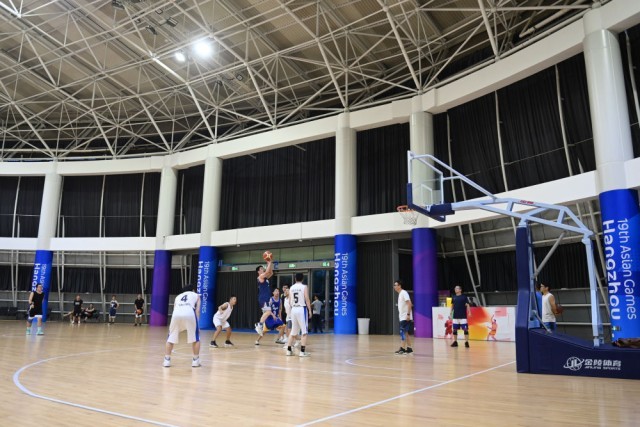 8月21日,市民在黄龙体育中心体育馆打篮球。这里将承办杭州亚运会体操项目比赛。